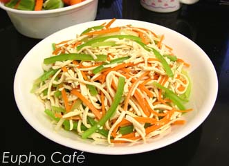 涼拌干絲 1. 小黃瓜切片、切絲,胡蘿蔔切絲備用。...read more |
